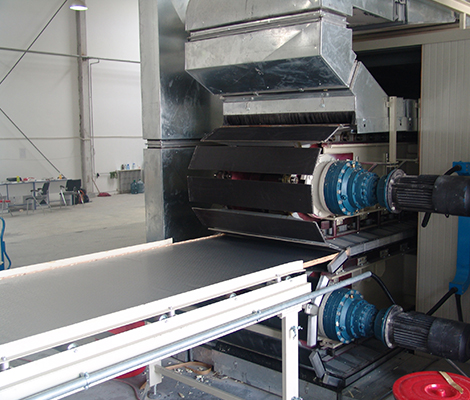 擁有國(guó)內(nèi)從歐洲全套引進(jìn)的柔性面材夾芯板連續(xù)生產(chǎn)線兩條。